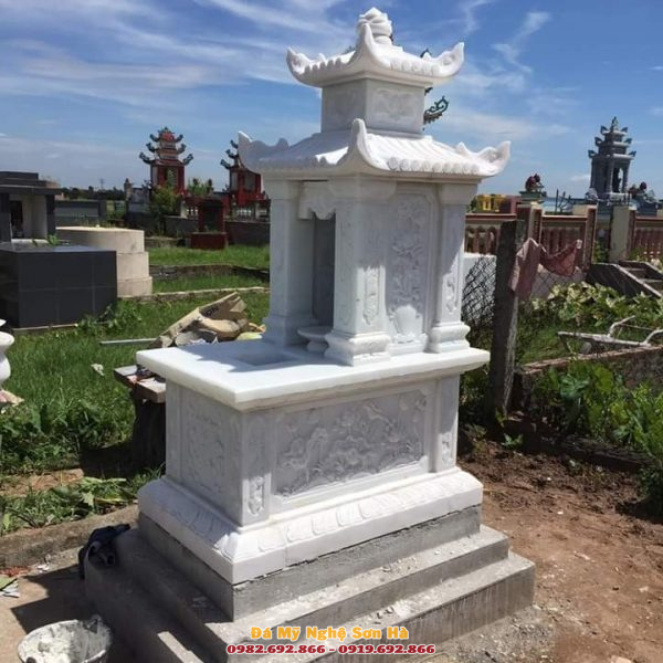 Mộ đá trắng là mộ đá được chế tác từ đá trắng tự nhiên nguyên khối nguyên khối. Loại đá này chủ yếu khai thác được khai thác ở Yên Bái và Nghệ An. Lăng mộ đá trắng này phù hợp với người mệnh Kim và Thủy.