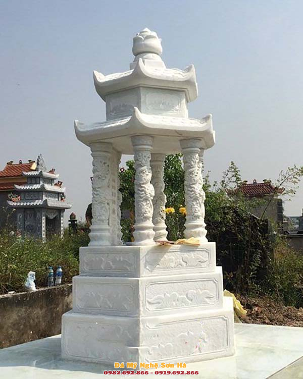 Mộ tháp đá trắng được thiết kế, sản xuất, chế tác từ đá trắng tự nhiên, bởi các nghệ nhân chế tác đá có tay nghề cao, kinh nghiệm lâu năm tại làng đá truyền thống nổi tiếng Ninh Vân – Hoa Lư – Ninh Bình.